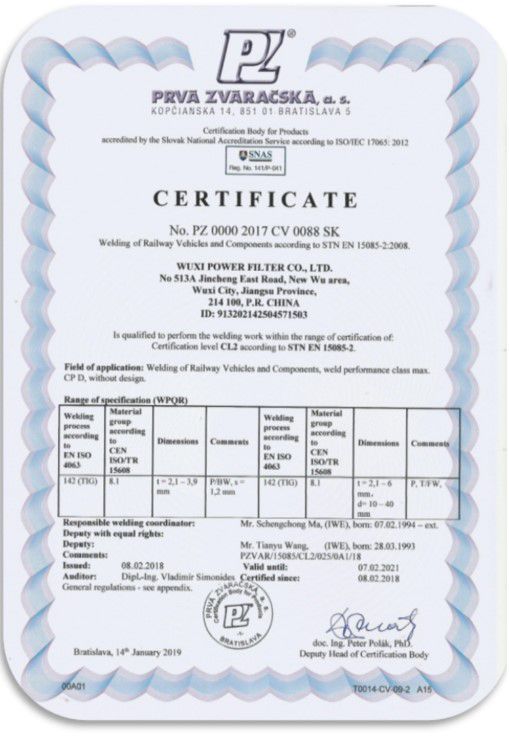 全面貫徹實施ISO9001質(zhì)量管理體系和STNEN15085-2國際焊接體系認證,公司通過建立一系列的質(zhì)量目標,構成目標體系,并根據(jù)實際情況的變化,改進質(zhì)量目標要求值,在《質(zhì)量手冊》的指導下,制定一系列控制程序。